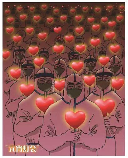 “宅”在家的日子里,沈天呈创作了30多幅抗疫主题漫画:《不信谣、不传谣、不添乱》中孙悟空手拿金箍棒,打向各种谣言;《削发为“你”》中医疗队队员为更好投入战斗,毅然剪去青丝;《放灯》中小女孩手捧莲花灯为医生母亲加油、为武汉加油……