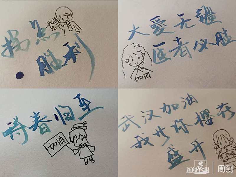 有的同学用手中的画笔,暖心助力,别样抗“疫”: