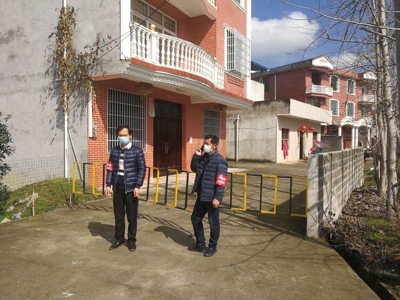 饶志雄老师所处湖北省咸宁市金星村也是县里疫情较为严重的灾区,他以身作则,当好表率,响应当地政府号召,主动请缨参加了村委疫情联防联控工作。主要工作包括:看守一条已封闭的道路,防止村内外人员翻越;佩戴党员袖章,跟随其他工作人员在村里进行巡逻,宣传政策,对未戴口罩、聚集聊天、打麻将打牌等不当行为进行劝阻;担任村里11户人家的十联户联防长,宣传、督促疫情防控“十严禁”要求,关心11户家庭的生活情况,及时向村里负责采购工作人员汇报。