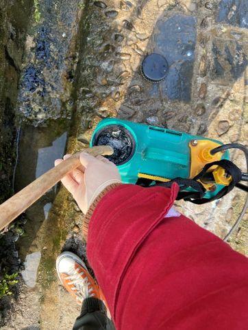 得知村消毒队缺少人喷洒消毒剂时,作为一名理工科学生,他知道只要规范操作就不会带来危害,便毅然报名参加。在工作前,他悉心向长辈请教喷雾器的使用方法。快速上手后,他便跟着消毒队里的村干部,背着四十多斤重的消毒水,走遍整个村庄的大街小巷,喷洒消毒水。消毒水的气味不大好闻,即使戴着口罩,也难以隔绝其刺鼻的药水味。第一次使用喷雾器时,他还不慎将消毒水沾到了衣服上,夹克衫后背因为消毒水腐蚀,大片褪色。每天工作下来,他差不多要走20里路,肩膀也被喷雾器的背带勒得生疼。