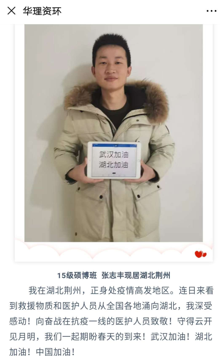 庚子冬春跨年,一场突如其来、态势凶猛的新型冠状病毒肺炎疫情蔓延全国。在这场没有硝烟的战役中,华东理工大学资源与环境工程学院共有40名师生暂留湖北省,其中就包括学院党委副书记饶志雄老师。