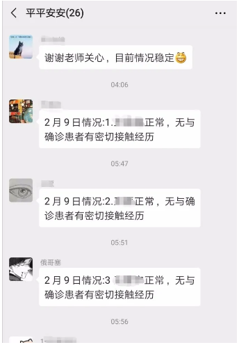 不得不说,新冠肺炎疫情突如其来、态势凶猛。目前,我们华东理工大学资源与环境工程学院共有40名师生暂留湖北省。我想,我们暂留湖北的,可能会是全国最后回到上海的那批人。在武汉封城,也是我们回到湖北以后,我第一时间将身处湖北的同学拉入一个微信群,一个qq群,分类指导,并取群名为“平平安安”,鼓励大家不焦虑、不恐慌、不信谣、不传谣,共同为武汉加油,为湖北加油,为中国加油!我还对重点学生进行“键对键”关怀,通过私聊的方式安抚他们的心理。