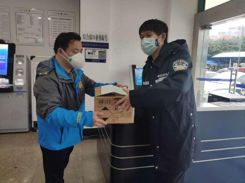 在实现产品的批量生产后,团队立即免将洗手消毒液送到抗疫的一线工作人员手里,为他们多提供一道安全防护。