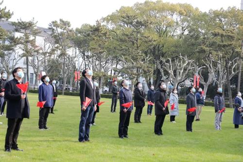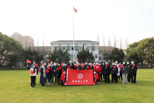 旭日东升,朝霞遍染。3月2日,在华东理工大学正式开始线上教学之际,学校举行新学期升旗仪式。校党委副书记宋来,党委办公室、党委学生工作部、机关工作党委、党委研究生工作部、团委、党委宣传部、保卫处、后勤保障处、国际教育学院负责人,以及留校的本科生、研究生和留学生代表,后勤和保卫工作人员代表共30余人参加了升旗仪式。