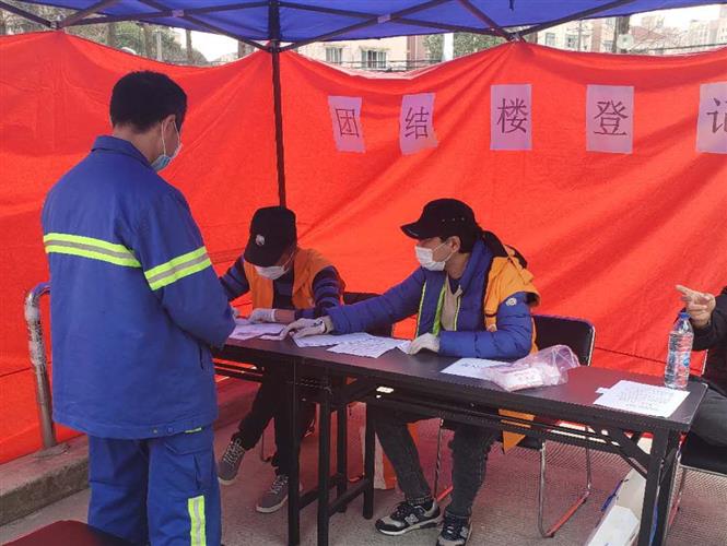按照学校和凌云街道的统一工作部署,后保处小区物业部、保卫处和街道房管办、社区民警、一四村居委成立联合工作组共同商讨团结楼防疫工作。工作组讨论决定因团结楼不具备隔离条件,对所有回沪未满14天住户一律予以劝阻到小区外隔离。