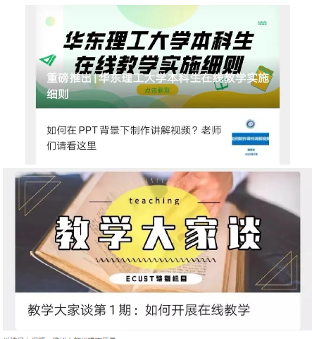 为保障在线教学效果,很多老师选择自己录制课程。为此,华理提前对老师们开展了培训。教务处陆续发布各种线上平台工作流程以及在线教学视频录制方法,组织教师收看上海市推出的在线教学能力提升专题节目及其他在线课程平台的线上培训,还通过微信平台推出“教学大家谈”栏目,鼓励教师分享交流先进的教学经验。在发布教师培训手册的基础上,学校信息化平台又建立了5个微信群,全校900多位教师加入其中,智慧树课程交流微信群也已有200多位教师加入,由技术人员在微信群中培训、辅导。
