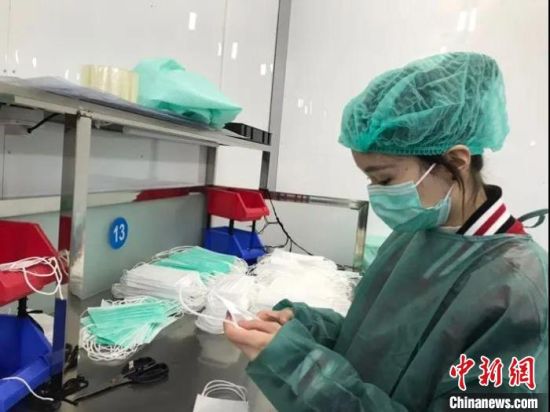 华东理工大学商学院17级本科生、共青团员周沁人,报名参加了口罩制作的志愿活动。一天工作8小时,眼睛需要像显微镜一样精准的检查每一只生产出的口罩,腿酸眼花阻挡不了她默默奉献的决心,她最终独自完成了近1300件口罩的挑选任务。