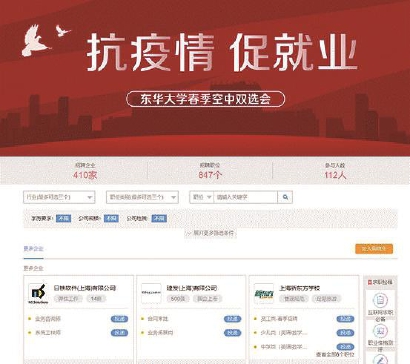 特殊时期帮助学生就业,同样是一次“战疫”行动。眼下正是高校毕业生求职择业的攻坚时期。东华大学第一时间制定出疫情期学生就业工作实施预案,启动春季线上双选会,提供线上就业服务和生涯指导,暖人心、强信心,及时为学生提供就业服务。