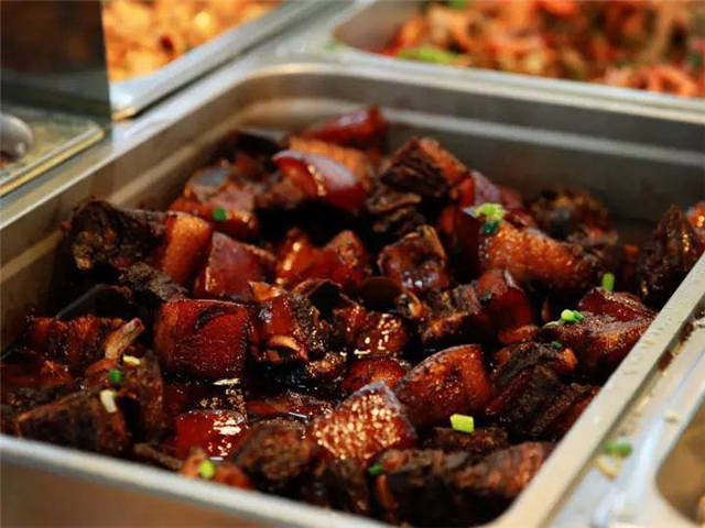 每年的毕业季、爱校餐、搬迁客饭、返校校友客饭、年夜饭等都会有华理红烧肉的身影。一块红烧肉,承载着浓浓的母校情,成为了许多届华理人的共同记忆。据介绍,华理红烧肉采用上海本帮红烧肉的做法,浓油赤酱、肥而不腻、酥而不烂。