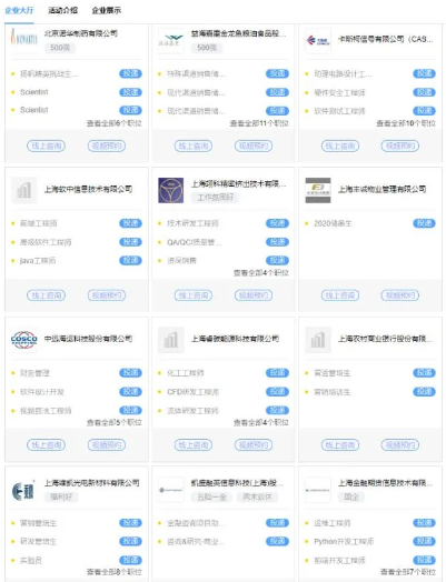 为切实保障毕业生身体健康和就业权益,最大限度减轻疫情对毕业生就业工作的影响,日前,华东理工大学开展了“共同战‘疫’·决胜未来——2020春季名企空中双选会”线上招聘活动,为毕业生提供每天24小时连续3天的网上校园招聘服务。150余家来自上海、浙江、江苏、山东、福建、重庆等地的用人单位在线招聘,中国建筑第八工程局、中国航发商用航空发动机、中国兵器装备集团等30余家知名企业集中上线招聘。线上企业共提供近1000个工作岗位,招聘专业以化工、机械、材料、信息、数学、生工医药、文商等为主,囊括华理所有专业大类,吸引了众多校内外应届毕业生。