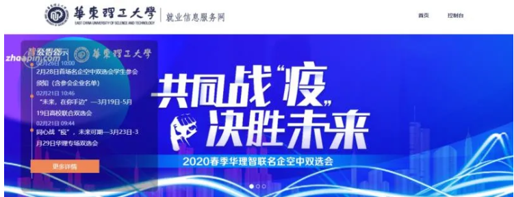 据悉,本次华理空中双选会着力拓展线上招聘渠道,打破时间与空间限制,实现用人单位在线招聘,实时互动,在线答疑,浏览、接收、管理学生简历,学生可随时与企业沟通交流,并开展线上视频面试,让求职变得更快速、更便捷、更精准、更高效。接下来,华理就业中心还将拓宽就业渠道,积极收集就业信息,优化就业信息服务,3月份将举办多场空中双选会和宣讲会,帮助毕业生顺利就业。