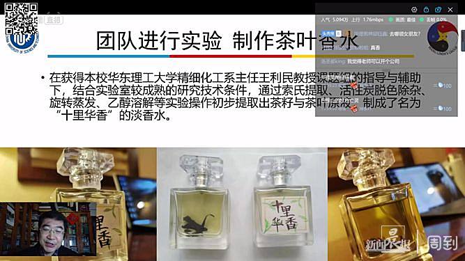 王教授在课堂上带来了华理团队研发的“华理香”洗手液,还有 “华理十二香”,观看直播的学子纷纷狂刷弹幕:OMG!买它!