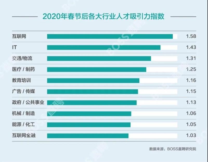 从行业分析看,BOSS直聘研究院数据显示,春节后受疫情影响相对较小的互联网行业人才吸引力指数位居首位。上海大学计算机学院分管就业的党委副书记钱文馨举例,往年在上大招聘的金融行业企业,以经管专业类岗位为主,近期来校招聘的则在信息、通讯等技术岗位上投放较多。“可见,一些行业正在加大力度,对中长期的在线业务的技术人才进行储备。”
