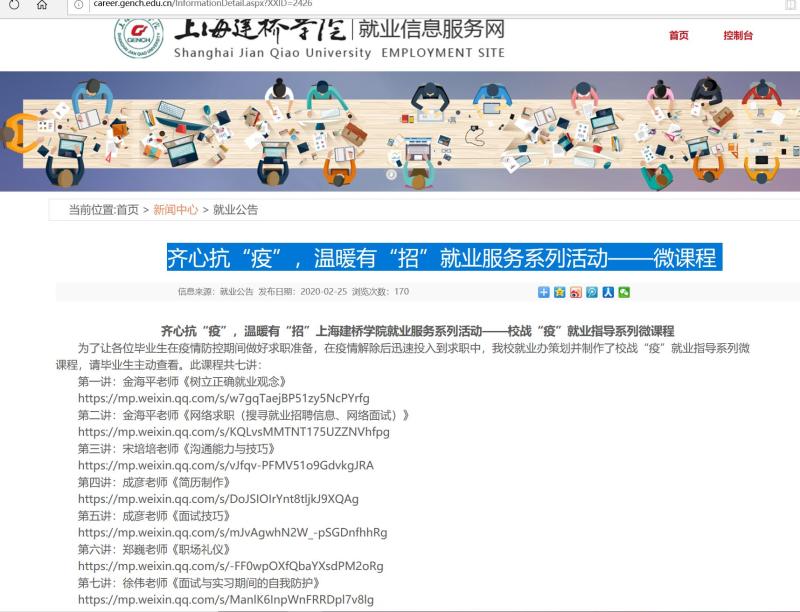 确实,不论大学还是中小学,仅在线教育一项就牵动全行业转型上线,“变危机为契机”。上海师范大学教育学院严雅琴、熊王美两位毕业班辅导员,虽然身处湖北,仍运用网络渠道“线对线、键对键、一对一”掌握学生求职动向,帮助毕业生们足不出户、精准就业。目前,教育学院已有近55%的毕业生基本确定工作单位。同样,作为民办高校的上海建桥学院,三、四月份就计划举办5场网络招聘会,就业办联系包括新东方在内的大型企业进行空中宣讲,目前已有1000多位毕业生参加了新东方进行的线上视频招聘。