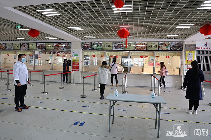 师生有序排队,进行体温监测后进入指定食堂;食堂内设置取餐动线标识和人员分流围隔,引导师生动向,避免拥挤;疫情期间,师生就餐将以打包为主,按照宿舍楼区分就餐食堂,并以宿舍为单位进行取餐。