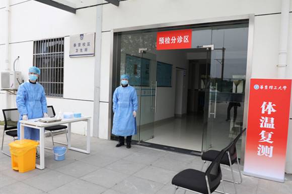 在集中返校环节,集中返校当日,学生统一从校区北门进入校园,返校学生依次进行身份识别、体温监测;若发现学生有发热状况,引导至校门口的体温复测点进行复测;若复测后体温≥37.3℃,则更换医用外科口罩后在临时等候区等候送医;学院安排人员陪同就医,校医院联系防疫专用车辆送诊,同时上报学生信息至学校疫情防控领导小组。
