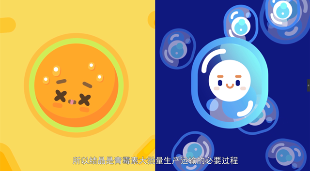“在青霉素培育菌种和结晶实验的过程中有着许多大众所不熟知的微观化学反应,我们将水分子等一些微观世界的角色进行了卡通动画的设计,让整个化学实验充满画面感和趣味性。”孙一文说。