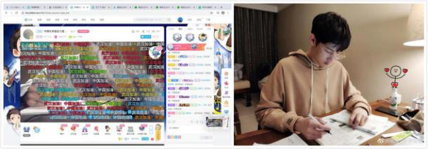 从2020年2月8日起,在哔哩哔哩(即“B站”)华东理工大学“化学堂自习室”直播间里,拥有15.7万粉丝的2019级厉亮同学带领同学们一起进行寒假自习。首日直播的4个小时里,人气峰值为6454、新增关注498人,在1002条弹幕里,“中国加油!武汉加油!”频频刷屏。