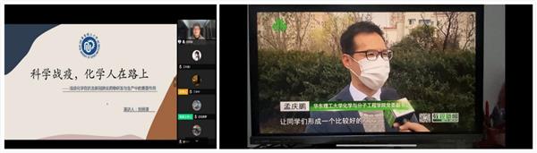 有人当起学习主播,也有人透过电波比拼演讲。“化学堂”微演讲第二季比赛也转移至线上开展,在腾讯会议的平台上,化学知识的力量交互于屏幕两端,以“防疫中的化学”为题,化学学子分成了各个小组,在线开展“化学堂”空中演讲。从主持人到参赛者,全部由学生自主担当。“消毒剂的使用原理是什么?抗疫药物是如何研发的?”……演讲把知识性和趣味性相结合,同学们畅所欲言,让防疫思想在交流中碰撞。