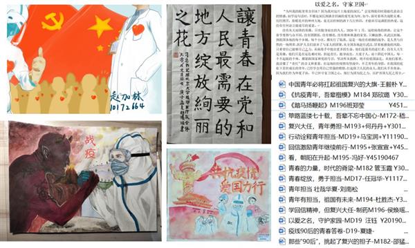 自抗击疫情以来,化学学院党委精心策划了“责任与担当”系列主题党日活动。2月,化学学院35个党支部通过学习强国平台等开展了“我是党员,我为抗疫做贡献”主题党日活动,通过“爱化学”等网络平台,先后推出了6期《战“疫”有我》系列报道,包括B站人气主播的化学堂自习室、防疫中的化学微演讲、防疫志愿服务中的党员责任等,充分展示了学院师生积极投身到防疫工作中的良好形象。3月,全院党支部开展了“把初心落在行动上、把使命担在肩膀上”主题党日活动,各支部通过“云”学习注重思想教育;通过分享和讲述聆听身边抗疫故事,发现最美防疫人;观抗疫纪录片、热议中国大国担当等。