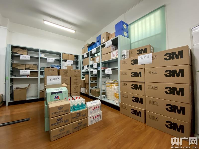 高校校医院展示部分防疫物资储备(央广网记者 唐奇云 摄)