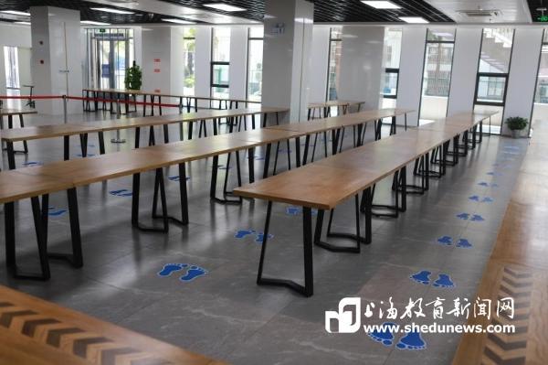 “食堂设置有醒目的引导线,指向8个取餐窗口,学生取餐后沿着引导线离开食堂。”后勤保障处处长岳海洋表示,引导线不会交叉合并,师生排队保持适当距离。