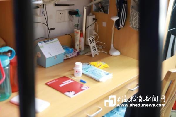 来到宿舍区,所有返校学生都需核准身份、测量体温正常后方可入住,一律不接待访客。学生公寓内公共区域、公共设施以及扶手、门窗等高频使用部位进行全面的清洁消毒,厨房等公共区域提倡错峰使用。终于回到温馨的“小窝”,每张书桌上都有一份来自学校后勤保障部的“大礼”——三包5只装的口罩、一支水银温度计、一罐酒精棉球、一块药皂及一本《校园防疫生活须知》。