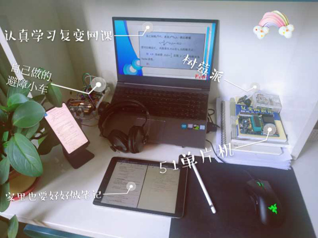 那张陪着大学生们从小到大的书桌,在这个特殊时期里再次“挂帅出征”。随着专业、兴趣和未来打拼方向的日渐清晰,书桌也越来越能彰显自己的个性和奋斗的足迹。