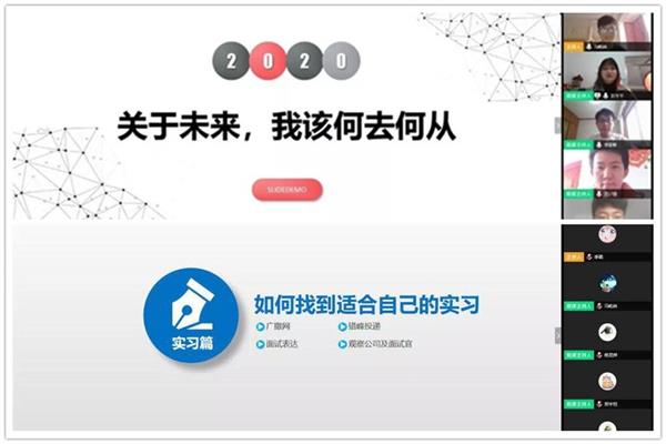 与此同时,商学院落实“全员育人、全程育人、全方位育人”的教育理念,充分发挥空中管理与服务团队的力量。辅导员B站(哔哩哔哩)直播年级大会,强化家国情怀,增添学习动力,以思想教育引领学风;利用专业知识,筹备心理课程,提高学生学习专注力,以心理帮扶助力学风;打通与班导师、教务老师、任课老师的沟通桥梁,实时跟踪网络课程开展情况,以全面摸排保障学风;定期对重点关心同学展开“在线家访”,形成家校合力,以家校共育促进学风。