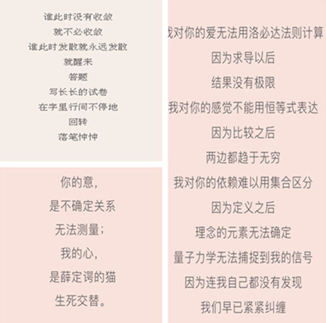 这是物理专业金祎超写下的一首浪漫情诗的节选。