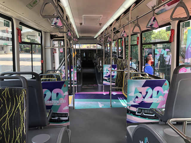 今天是5月20日,这一全新的申沃智能客车从车身到车厢,而也都被布置一新,贴满了“520”的表白语。这也是久事公交集团主办的“520关爱日”的其中一环,“希望以这样一场别开生面的表白仪式,向平凡的上海公交人致敬。”