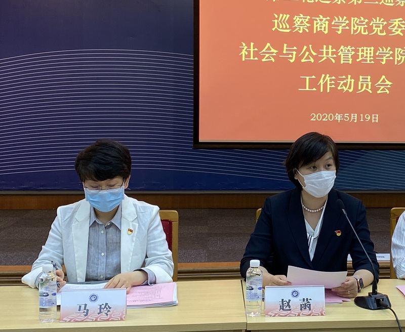 图片说明:马玲、张广利代表商学院、社会学院党委作表态发言