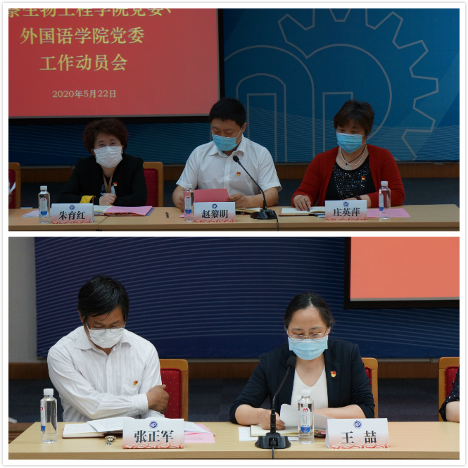 图片说明:赵黎明、王喆代表生工学院、外语学院党委作表态发言