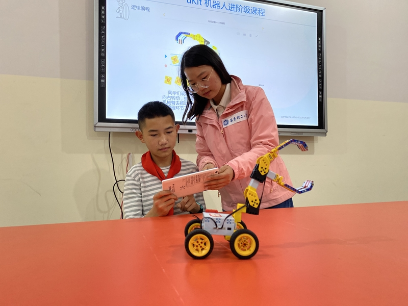 日常课堂之外,华理的“小老师”们也在科普方面作了许多努力:每周到寻甸县青少年科技馆担任义务讲解员,已为上千人次的青少年和家长提供服务;利用社团活动课、自习时间等开展科普,培养青少年的兴趣爱好;助力寻甸首次参加URC青少年人工智能机器人挑战赛……特别令人高兴的是,由华理援建的寻甸科技馆虚拟现实(VR)科普工作站即将落成,今后,支教团的科技创新科普又多了一个“大本营”。