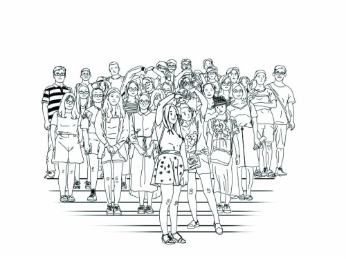 通过老师,他们向毕业班收集了一些此前班级合照,从中挑选出最佳表现班级风貌而且遮挡情况比较少的优质照片进行参考手绘。两位主创经过各种方案的筛选,最后选择用比较简单的线条的方式。最终手绘的毕业照在微信端口呈现,并通过点一下画作出现原图呈现动画效果,因此,更能有一种时光穿越的感觉。