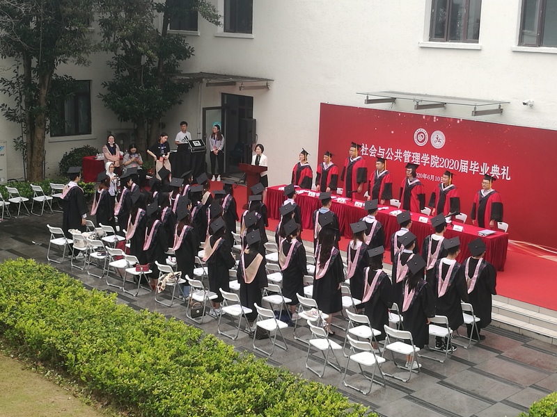6月10日上午,社会学院2020届毕业典礼在学院草坪顺利举行。考虑当前防疫工作要求,在充分排摸学生返校参加毕业典礼意向的基础上,社会学院将本届毕业典礼按研究生、本科生各专业分为6个批次先后举办。社会学院院长何雪松,党委书记张广利,党委副书记储琰,副院长杨发祥、陈丰、刘晓亮,各系正副系主任、毕业班班导师、全体辅导员共同参加了典礼,与160余名毕业生共同见证了这一重要时刻。毕业典礼由社会学院党委副书记万胤婕主持。