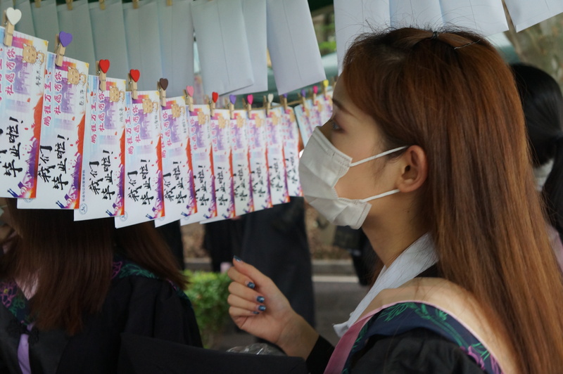 此次毕业典礼是社会学院第一次在户外分批次举办。当天,许多毕业生在学院再次相见,互道离别,和敬爱的导师合影表达感激。“我要感谢支持我、指导我的恩师们,感谢跟我一起默默奋斗的同学们、朋友们。”手捧学院毕业礼物、行管161班的吴怡表示,未来的人生道路必将恪守“勤奋求实 励志明德”校训精神,积极投身中华民族伟大复兴事业。