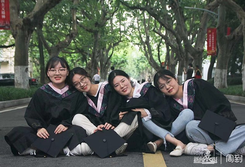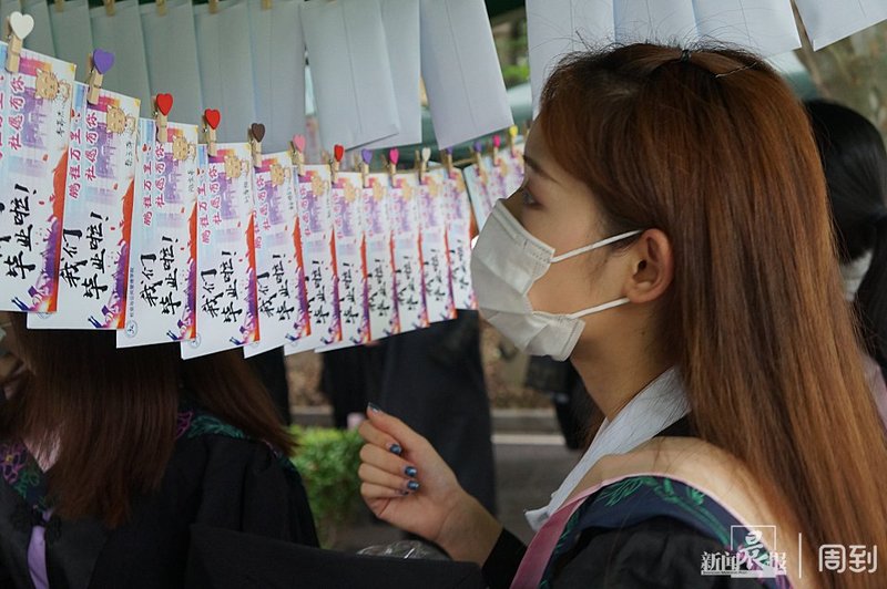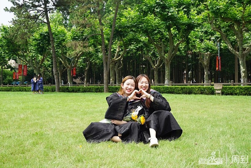 毕业典礼当天,许多毕业生再次在校园相见、互道离别,与敬爱的老师、亲爱的同学合影留念。