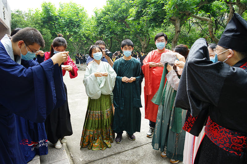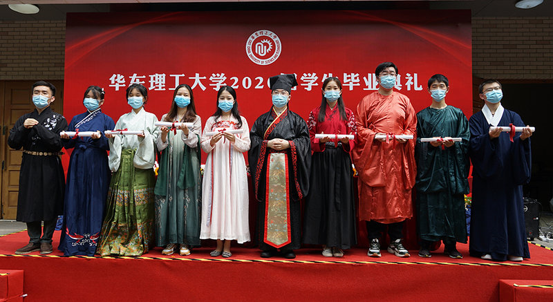 “兰之猗猗,扬扬其香。众香拱之,幽幽其芳。不采而佩,于兰何伤。以日以年,我行四方。”6月11日上午,在华东理工大学徐汇校区大礼堂前,在悠扬的《幽兰操》声中,8名年轻人身着汉服华裳,举行毕业典礼。