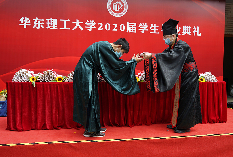 6月11日,华东理工大学一教授为学生举办古风毕业典礼。 视频来源:华东理工大学 剪辑:邹桥(00:38)