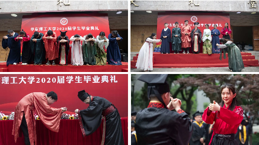 因为疫情影响,华理今年没有举办大型的毕业典礼,取而代之的是错峰、多场次、各具特色、直播式的毕业典礼。一大半的毕业典礼也从室内搬到了林荫道下、广场上,同学师生之间依依惜别,陆续踏上人生征程。