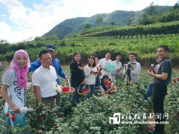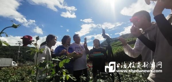 “这里海拔超过1800米,墨红玫瑰能够享受充足阳光的抚育,吮吸龙潭水的滋养,每一朵都是大自然的馈赠。秒杀马上开始,大家抓紧时间线上选购……”走进玫瑰花田、拿起话筒、架起镜头,7月5日,正在华东理工大学定点扶贫寻甸县支教的第21届研究生支教团的“小老师”们走下讲台,来到聚光灯前,与华东师范大学传播学院的实践团队一起当起了“带货主播”,为寻甸土特产品墨红玫瑰硬核代言。
