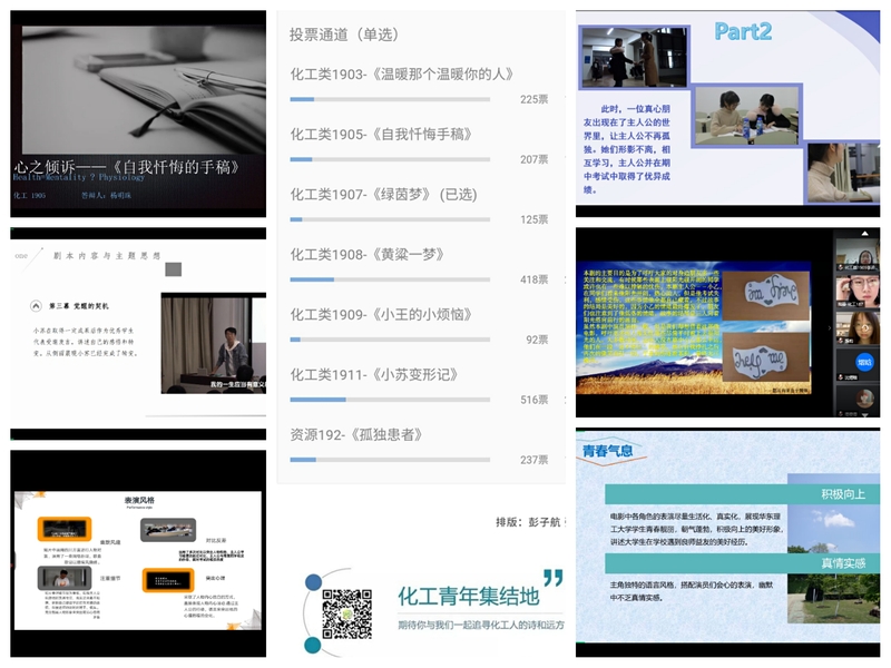 心理微电影大赛是化工学院“互联网+”思政的一次新的探索,希望捕捉校园常见的异常心理现象,通过学生自编、自导、自演,反映大学生内心的矛盾冲突和成长发展,从朋辈的视角传播心理健康知识,引导学生以积极的心态面对学习和生活。