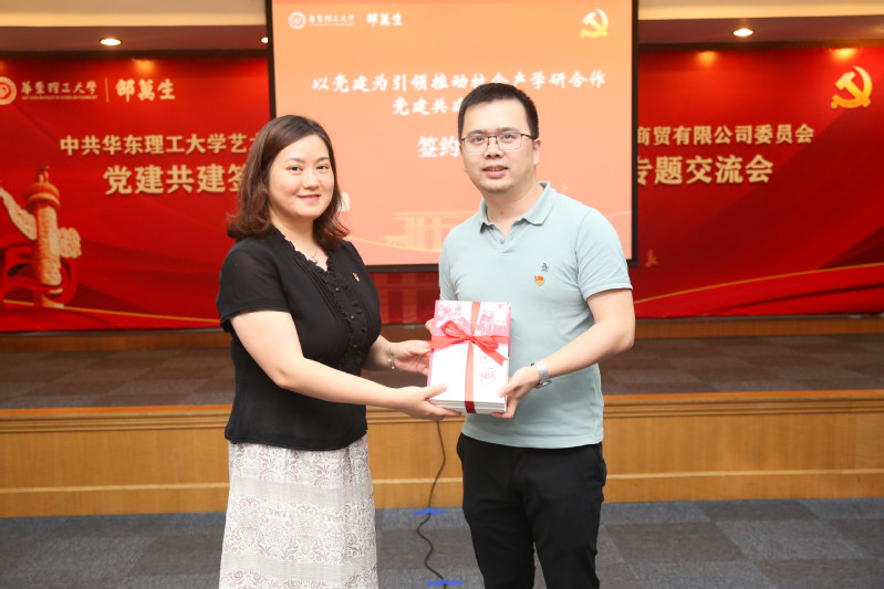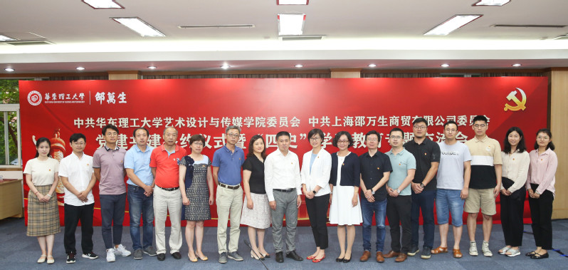 为深入贯彻落实党的十九大精神和上海市委关于加强基层党建工作的要求,进一步增强党组织活力,创新基层党建工作载体,提高基层党建工作水平,7月15日下午,我校艺术学院党委与上海邵万生商贸有限公司党委在我校徐汇校区举行党建共建签约仪式暨“四史”学习教育专题交流会。上海邵万生商贸有限公司党委书记、副总经理葛颋,党委副书记、纪委书记、工会主席郑峥业,党委委员、副总经理沈民,我校艺术学院党委书记赵菡,党委副书记王珊,党委委员、副院长汪军以及双方各党支部代表等参加了学习活动。签约仪式由赵菡主持。