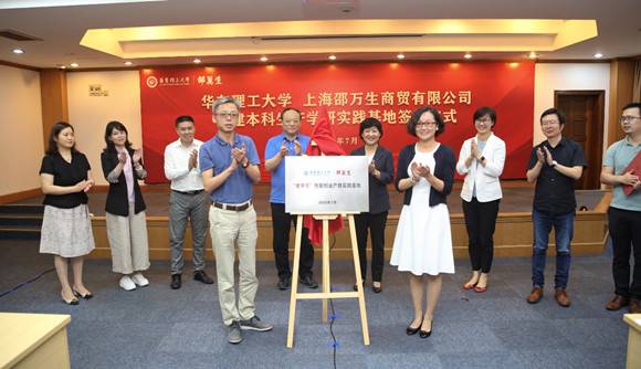 黄浦区就业促进中心副主任彭明,邵万生执行董事、总经理李金国,党委书记、副总经理葛颋,华东理工大学党委常委、副校长王慧锋,艺术设计与传媒学院党委书记赵菡等领导、师生代表参加了签约仪式。王慧锋与李金国共同签订了本科生产学研实践基地合作协议;艺术设计与传媒学院党委副书记王珊与邵万生副总经理沈民共同为“老字号”创新创业产教实践基地揭牌。