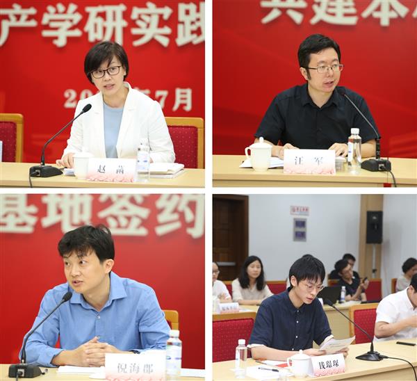 签约仪式上,王慧锋与李金国共同签订了本科生产学研实践基地合作协议;艺术设计与传媒学院党委副书记王珊与邵万生副总经理沈民共同为“老字号”创新创业产教实践基地揭牌。