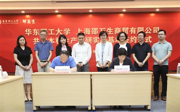 7月15日,华东理工大学与上海邵万生商贸有限公司(以下简称“邵万生”)在华东理工大学徐汇校区签订校企合作协议,共建本科生产学研实践基地,并单独设立“老字号”创新创业产教实践基地,用设计创新的力量为“老字号”品牌注入新活力。黄浦区就业促进中心副主任彭明,邵万生执行董事、总经理李金国,党委书记、副总经理葛颋,华东理工大学党委常委、副校长王慧锋,艺术设计与传媒学院党委书记赵菡等领导、师生代表参加了签约仪式。签约仪式由艺术设计与传媒学院副院长汪军主持。