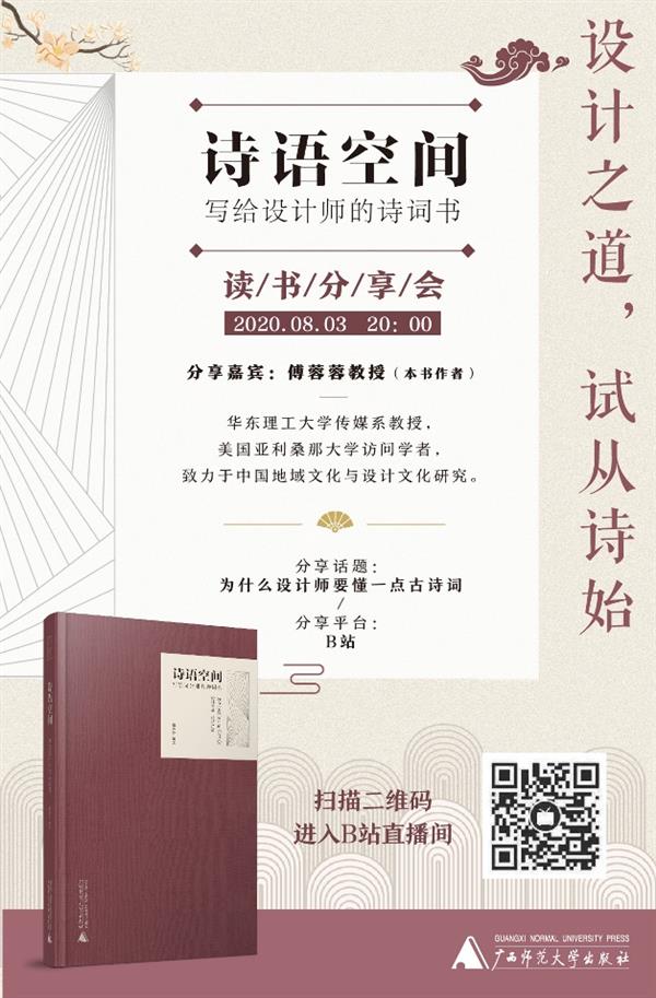 引入广西师大出版社优质资源,探索研究生教育创新学习模式,8月3日,华东理工大学艺术设计与传媒学院假座陇上书店,邀请傅蓉蓉教授开展了首期“艺起读书”线上读书会。针对后疫情时代暑假的特征,通过线上读书,拓展美育教育形式,提升研究生为主体的在校学生对优秀传统文化的接受力,以及继承传统与设计创新相融合的创造力。