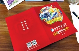 上海对外经贸大学2020年大学录取通知书以红色为主调,图文信息楼、知识门等学校标志性建筑穿插其中。同时,“诚信、宽容、博学、务实”的校训印于其上,饱含对新生未来可期的祝福:前景光明、前途坦荡!