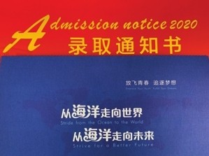上海海洋大学通知书采用象征海洋的宝蓝色为底色,封面印着“淞航”号,为国内首艘远洋渔业资源调查船。通知书的封底写着“从海洋走向世界,从海洋走向未来”,体现着上海海洋大学新时代的发展格局。